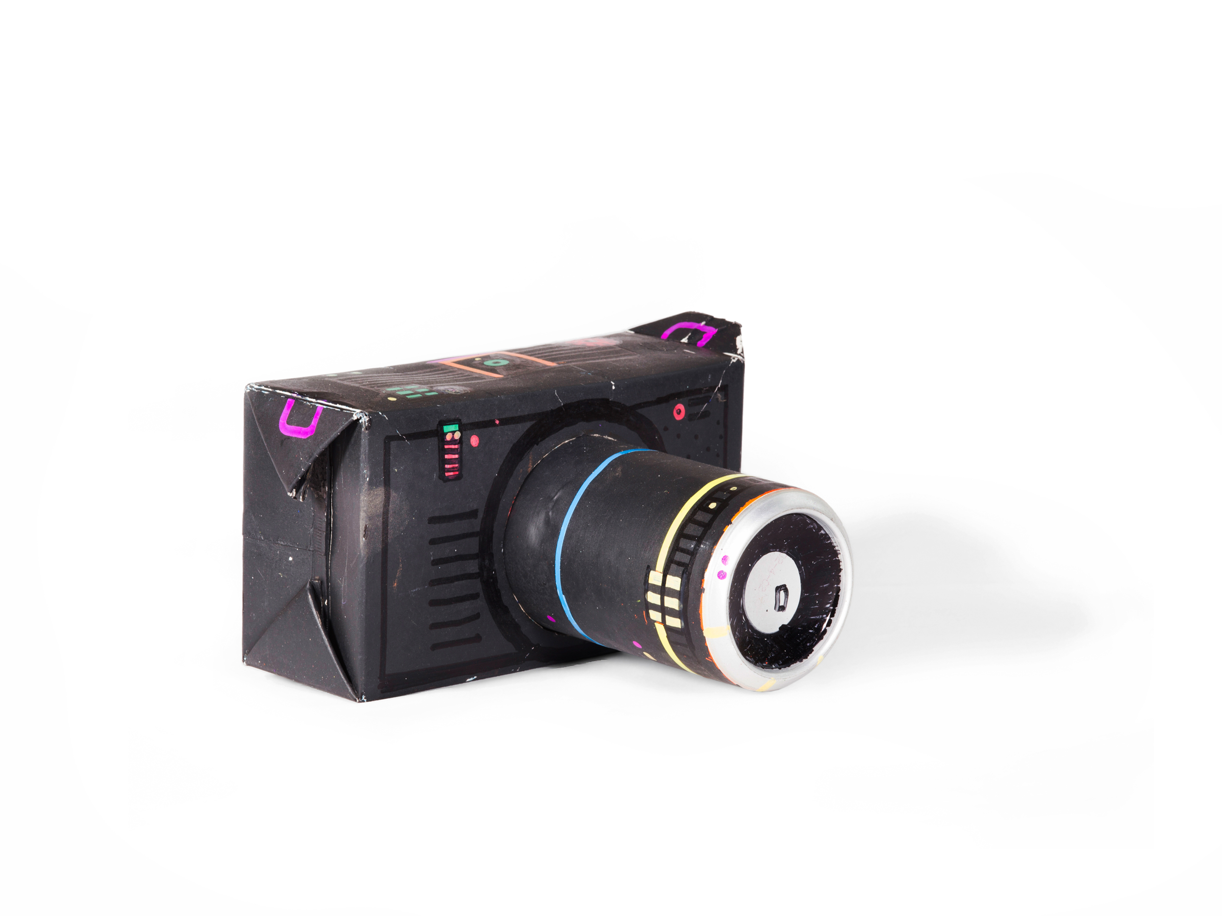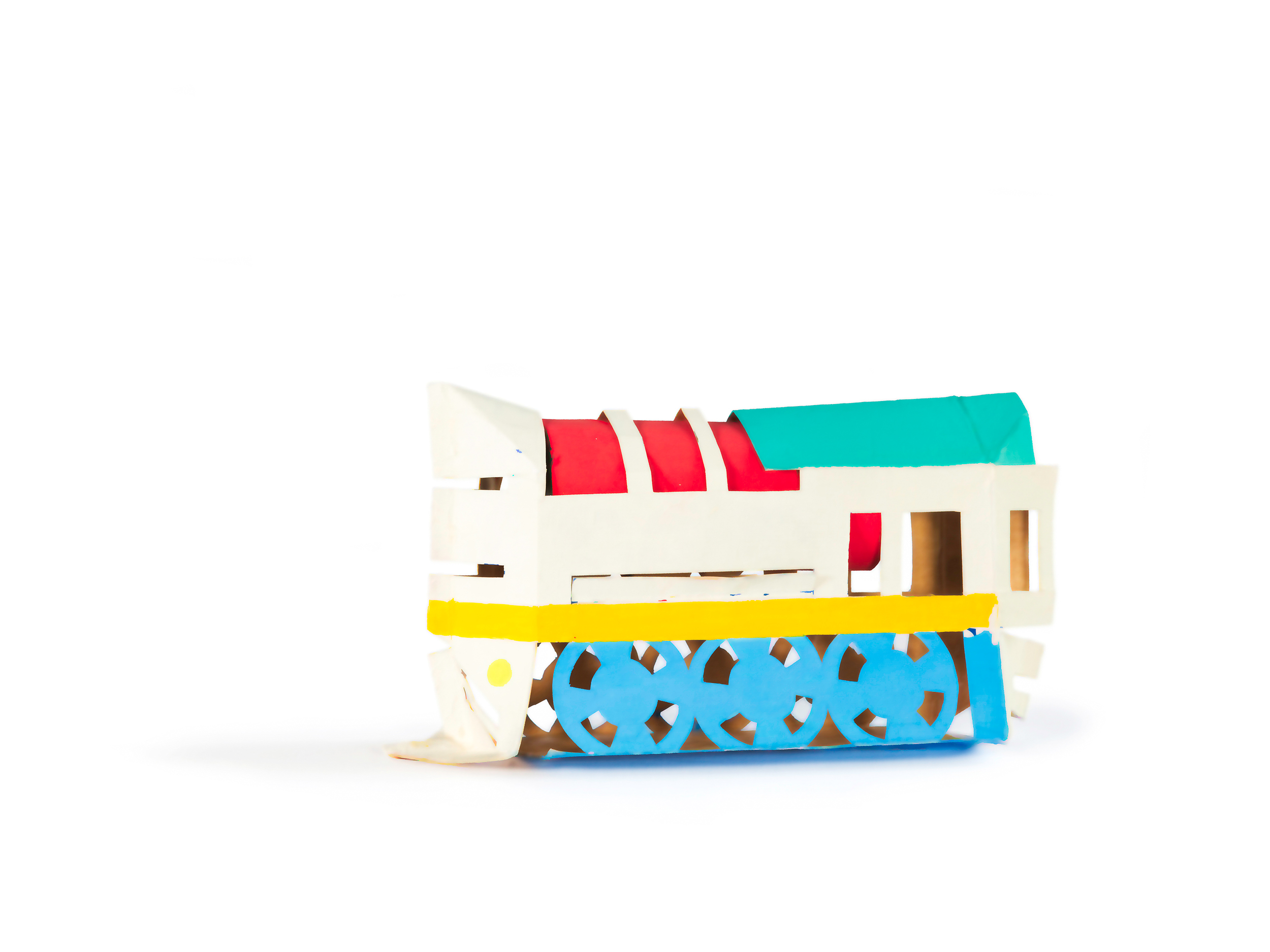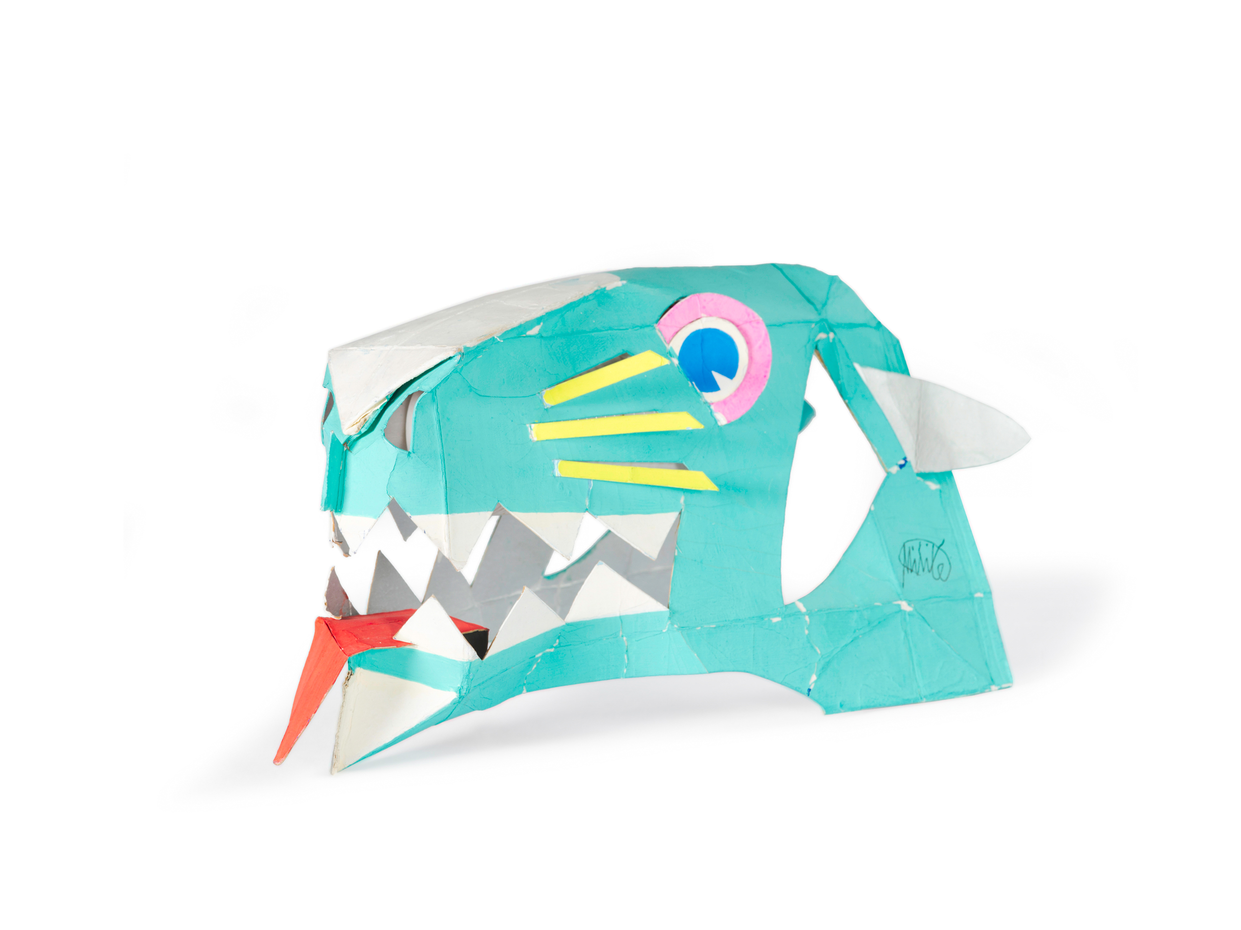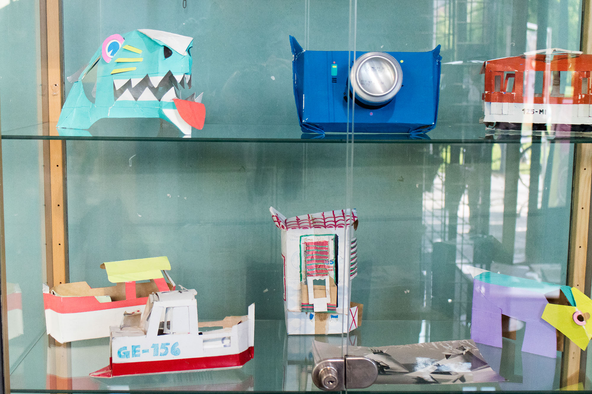 “Una parte della mia ricerca mi porta, con diverse tecniche e materiali, alla trasformazione dei contenitori. Dai più piccoli, come le scatole delle lampadine o del latte, ai “contenitori edilizi”. Tento di modificare qualsiasi tipo di scatola, non importa di quale dimensione sia. Se riesco ne cambio la forma e la destinazione d’uso. E spesso scopro che è nata per giocare e far giocare. Quelle del latte, i “tetrabrik”, diventano, senza opporre troppa resistenza, elefanti o battelli, musi di pantera, granchi e trenini…Con qualche taglio e poche pieghe, le scatole delle lampadine rivelano addirittura un’occulta identità di caccia bombardieri. Altri piccoli contenitori cartacei, come quelli delle saponette, non vedono l’ora di fare da personaggi umani, e la coppetta del gelato, poi sembra progettata apposta per fare da Piccolo Teatro.” Tonino Milite