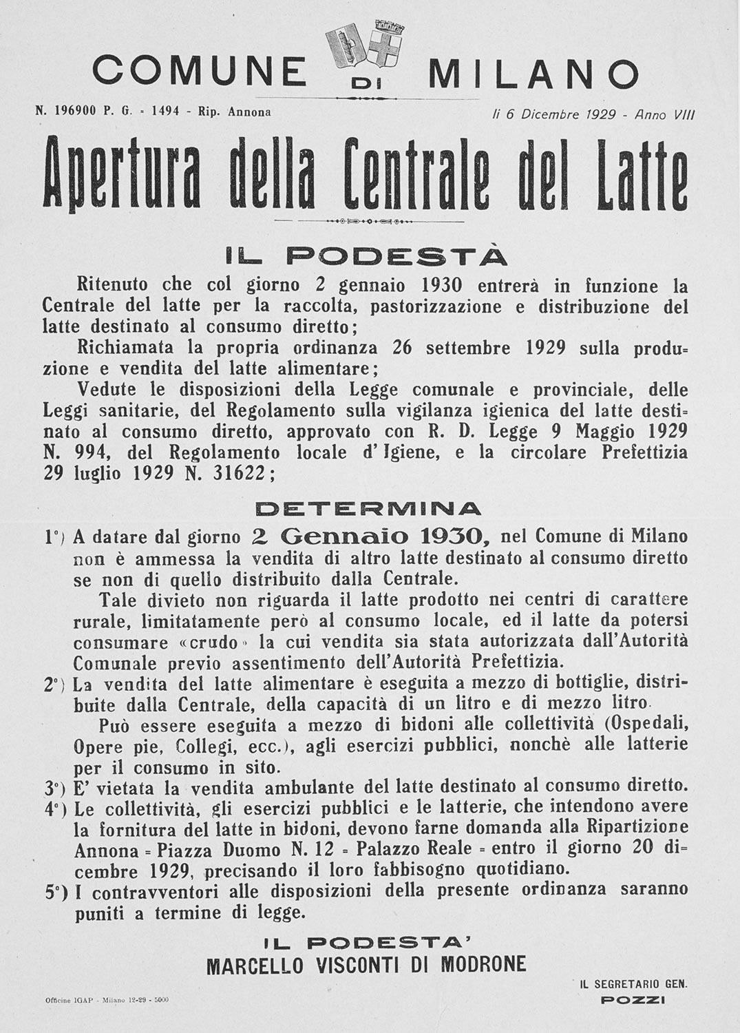 presenterà la storia della Centrale del latte di Milano dalla sua apertura il 1 gennaio 1930 fino alla sua dismissione, mostrandoci come si sia evoluta la raccolta e la lavorazione del latte da una tecnica artigianale alla produzione industriale.